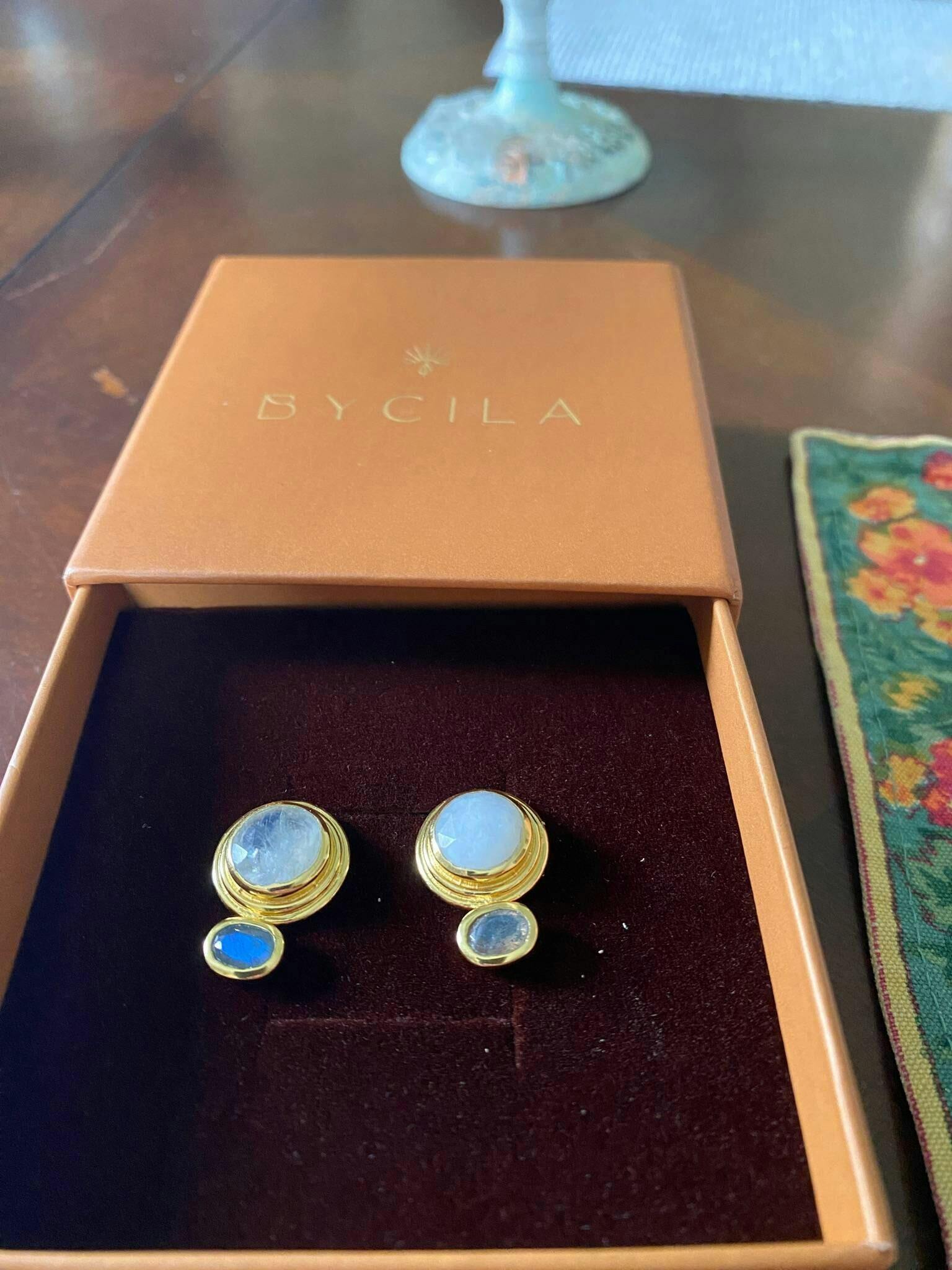 Athena Earrings * Labradorite & Moonstone Post * Gold Plated 18k * BJE165